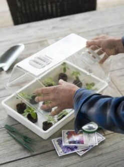 Deze grote transparante deksel van Nature heeft twee regelbare ventilatieopeningen en is geschikt voor rechthoekige kweekbakken. Dankzij de ventilatieopeningen is de vochtigheidsgraad in de kweekbak eenvoudig te regelen. De transparante deksel is gemaakt van duurzaam kunststof en heeft een afmeting van H 15 x 55 x 31 cm.